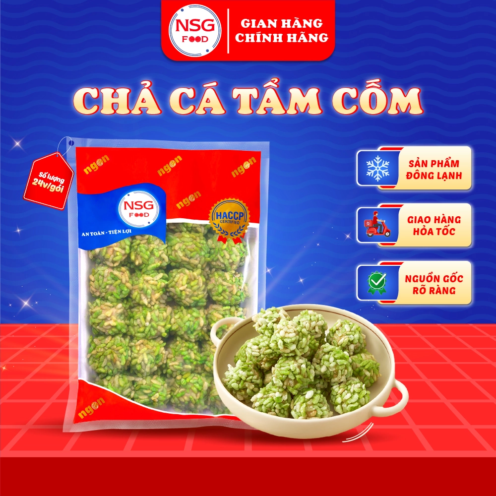 Chả cá tẩm cốm Nam Sài Gòn Food là sự kết hợp hoàn hảo giữa phần cốm chiên bên ngoài màu xanh đẹp mắt, thơm hương sữa của lúa, cắn vào bên trong lại thắm đượm vị cá tươi dai giòn với vị ngọt tự nhiên từ hải sản kết hợp với mùi thơm của rau củ và gia vị đặc trưng. Tất cả hòa quyện một cách lạ lùng, làm nên món đặc sản có sức hấp dẫn khó chối từ. Điểm đặc biệt của sản phẩm chả cá tẩm cốm Nam Sài Gòn Food nằm ở lớp cốm tẩm bên ngoài được chế biến bằng công nghệ đặc biệt làm cho cốm luôn giữ độ giòn và mùi thơm đặc trưng.